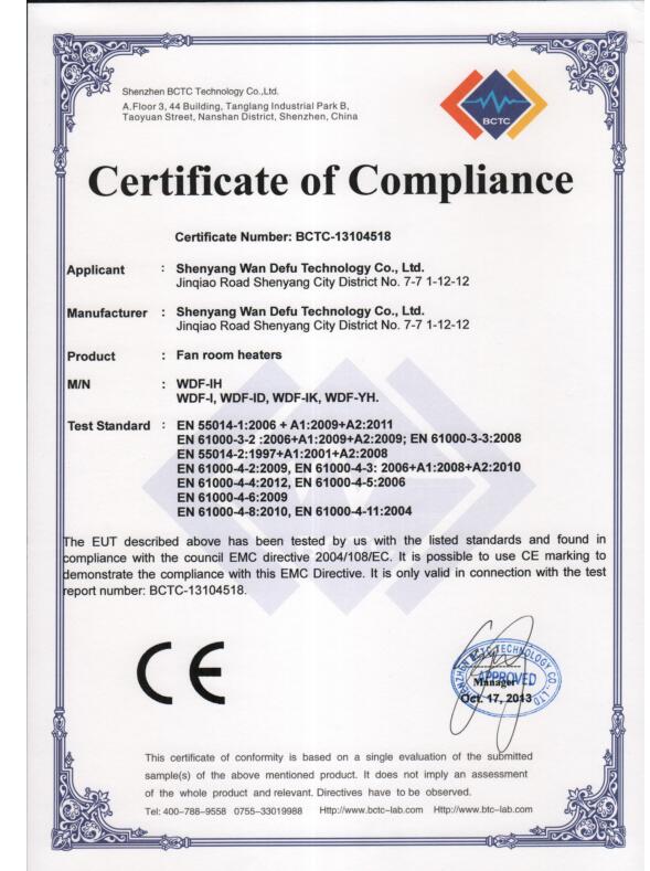WDF-IM3型風(fēng)扇式加熱器CCC證書
