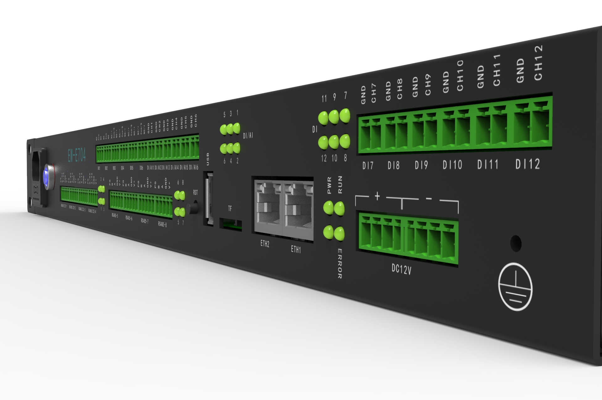 采集精度高,模擬輸入直流電壓精度≤0.5% ;溫度精度≤0.5℃;在環(huán)境溫度為20℃、濕度范圍為30%RH~85%RH時,濕度誤差≤5%RH;DI準確率100%;DO準確率100%。