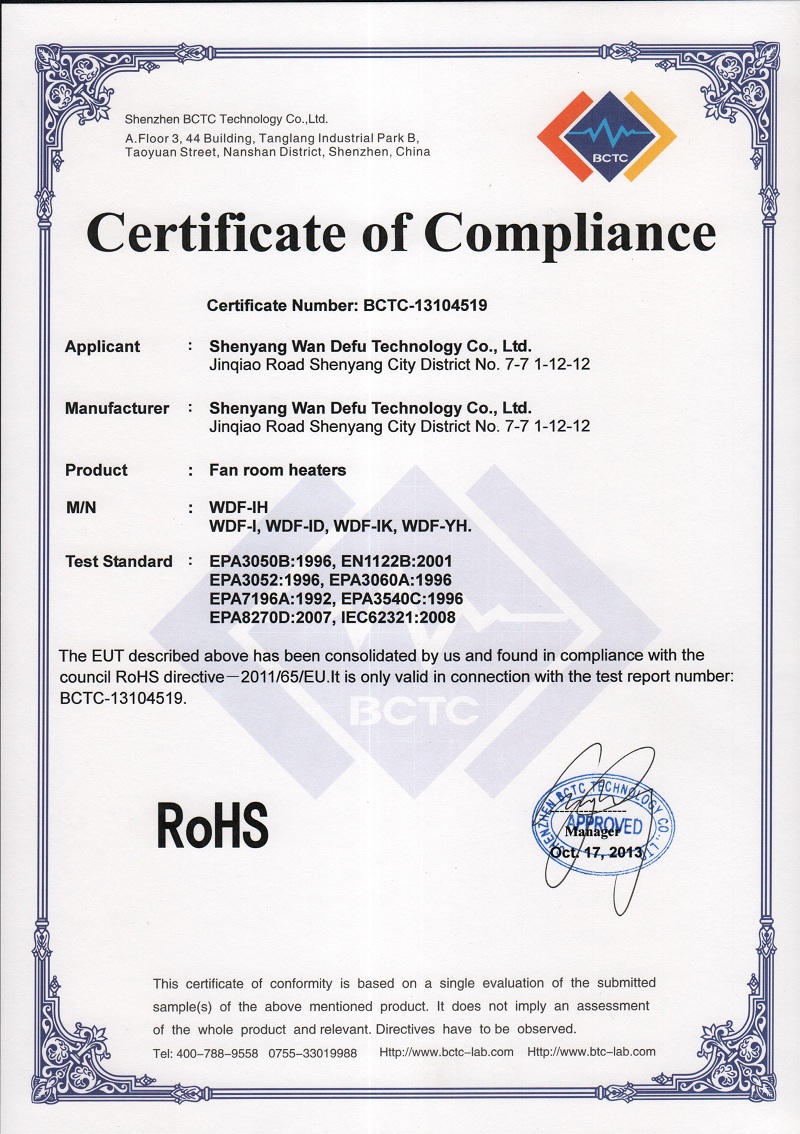 WDF-I加熱器CB證書